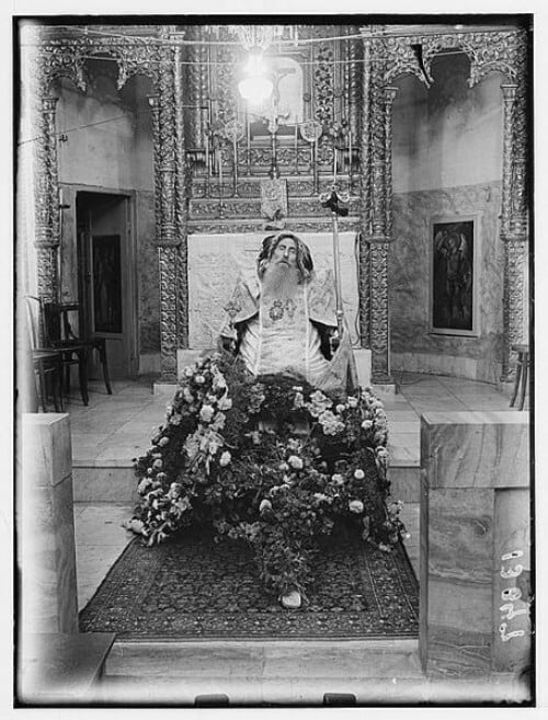 Με τον ίδιο τρόπο έγινε η κηδεία του μητροπολίτη Θεσσαλονίκης Γενναδίου, το 1951 ο οποίος σε όλη τη διάρκεια του προσκυνήματος ήταν καθιστός. Ακριβώς έτσι κηδεύτηκε ο Οικουμενικός Πατριάρχης Ιωακείμ Γ’, ο πατριάρχης Αλεξανδρείας Σωφρόνιος και ο Μητροπολίτης Γρεβενών Αιμιλιανός Λαζαρίδης.